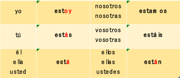 :1人称単数の語尾で-arを-oyに置き換え、2人称単数/3人称単数・複数にはアクセントをつけます。