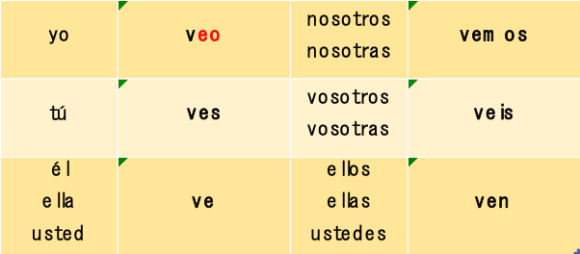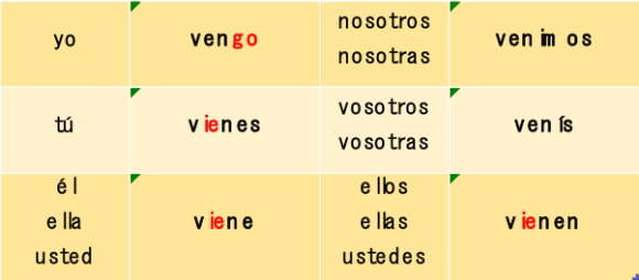 :1人称単数の語尾で-irを-goに置き換え、2人称単数/3人称単数・複数でeをieとします。