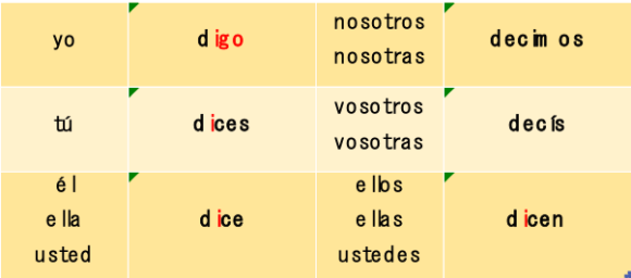 :1人称単数をdigoに置き換え、2人称単数/3人称単数・複数でeがiとなります。