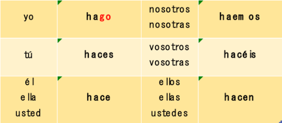 :1人称単数の語尾で-cerを-goに置き換え、他の人称では規則変化動詞と同様の活用をします。